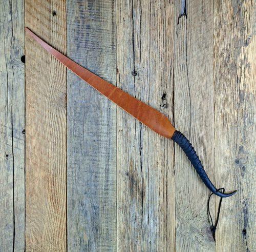 Drachenzunge aus braunem Rindgürtelleder (Blankleder) mit Padouk-Holz-Griffstück (heftig)