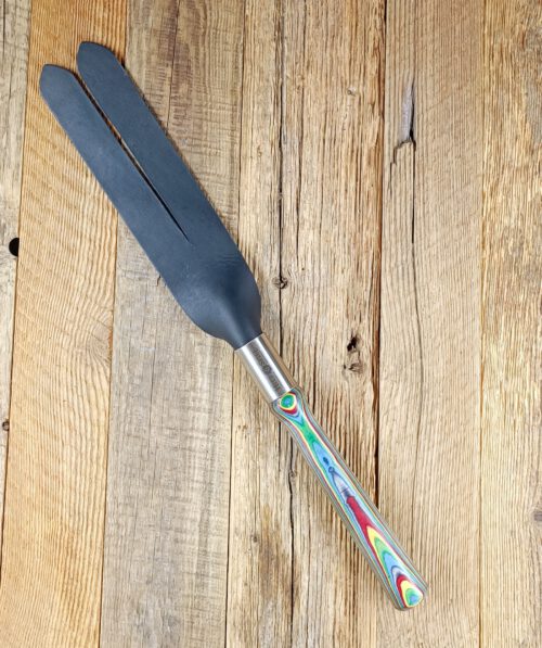 Drachenzunge aus Vollgummi mit rosametallicfarbenem Epoxidharzgriff (sehr heftig)