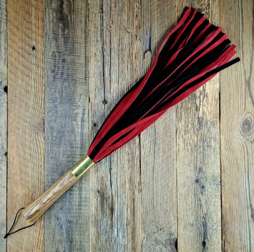 Flogger aus schwarz- und rotfarbenem Kalbveloursleder