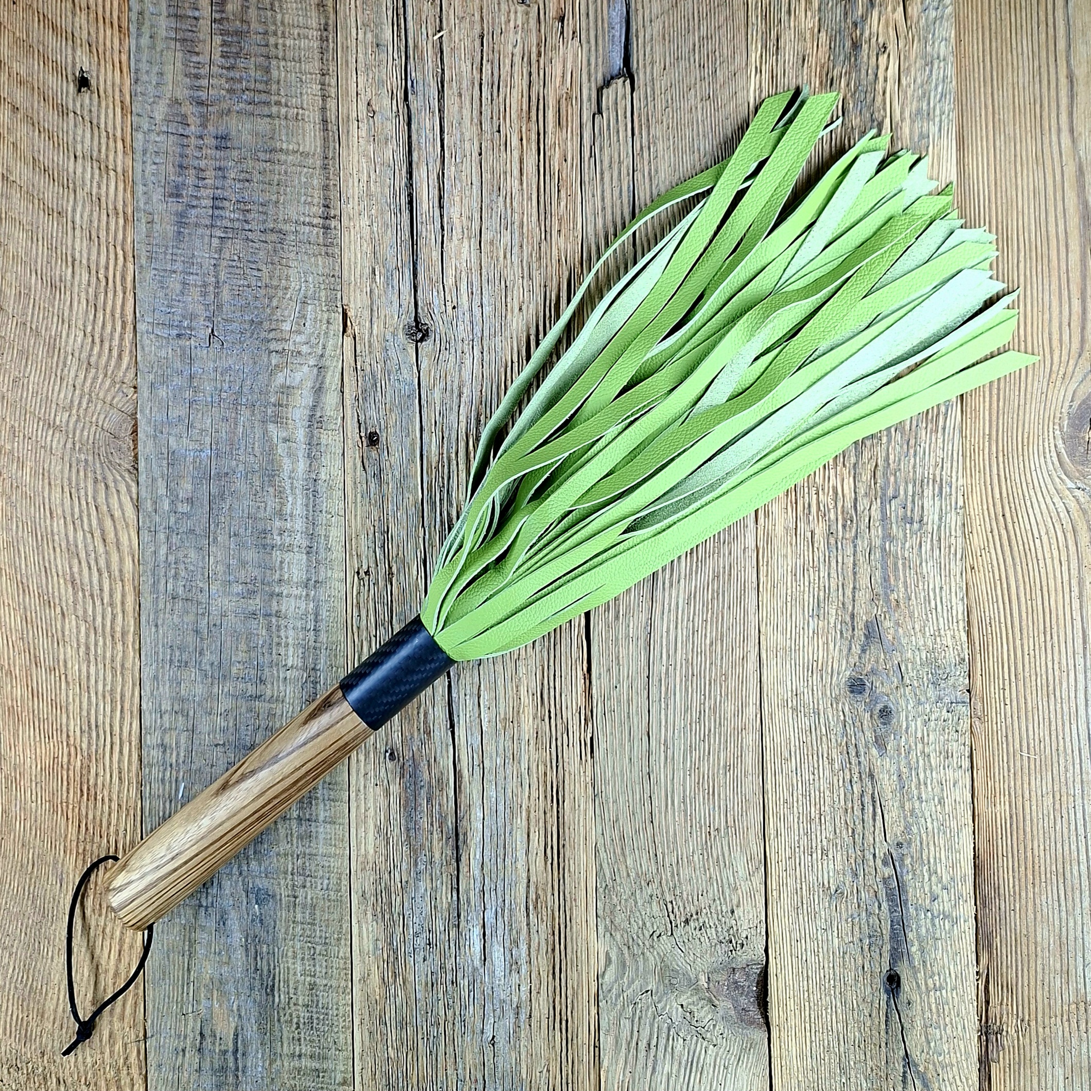 Flogger aus Zebranoholz und mintgrünem Rindleder