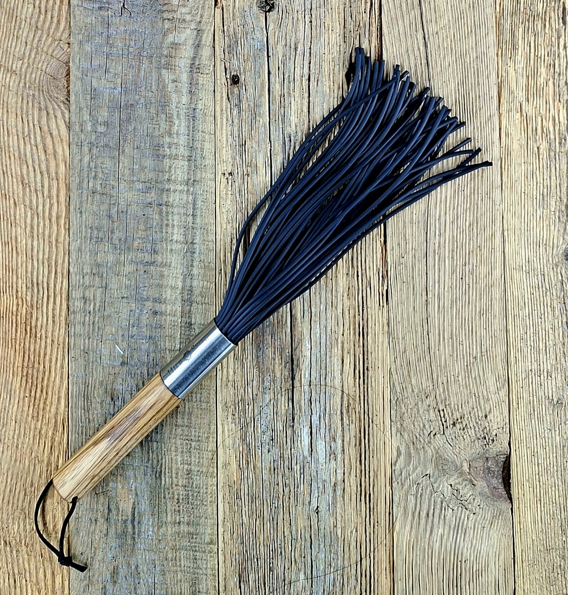 Dieser so unscheinbar wirkende Flogger hat es defintiv in sich. Die Gummirundschnüre sind richtig bissig und brennend. Sie sind nur drei Millimeter dick… Aber heftig.