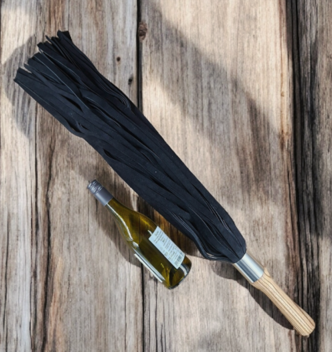 Dieser extrem wuchtige Flogger kann wunderbar streicheln. Oder einen fast umwerfen. Durch seine Länge von ca. 90 cm kann man ihn noch sehr gut schlängeln lassen was dem Gegenüber ein besonderes Gefühl der Umarmung gibt. Durchgezogen wirkt er durch seine 70 breiten Lederriemen (15 mm) und man kann kaum auf der Stelle stehen bleiben. Es bietet sich an, sich irgendwo abzustützen.