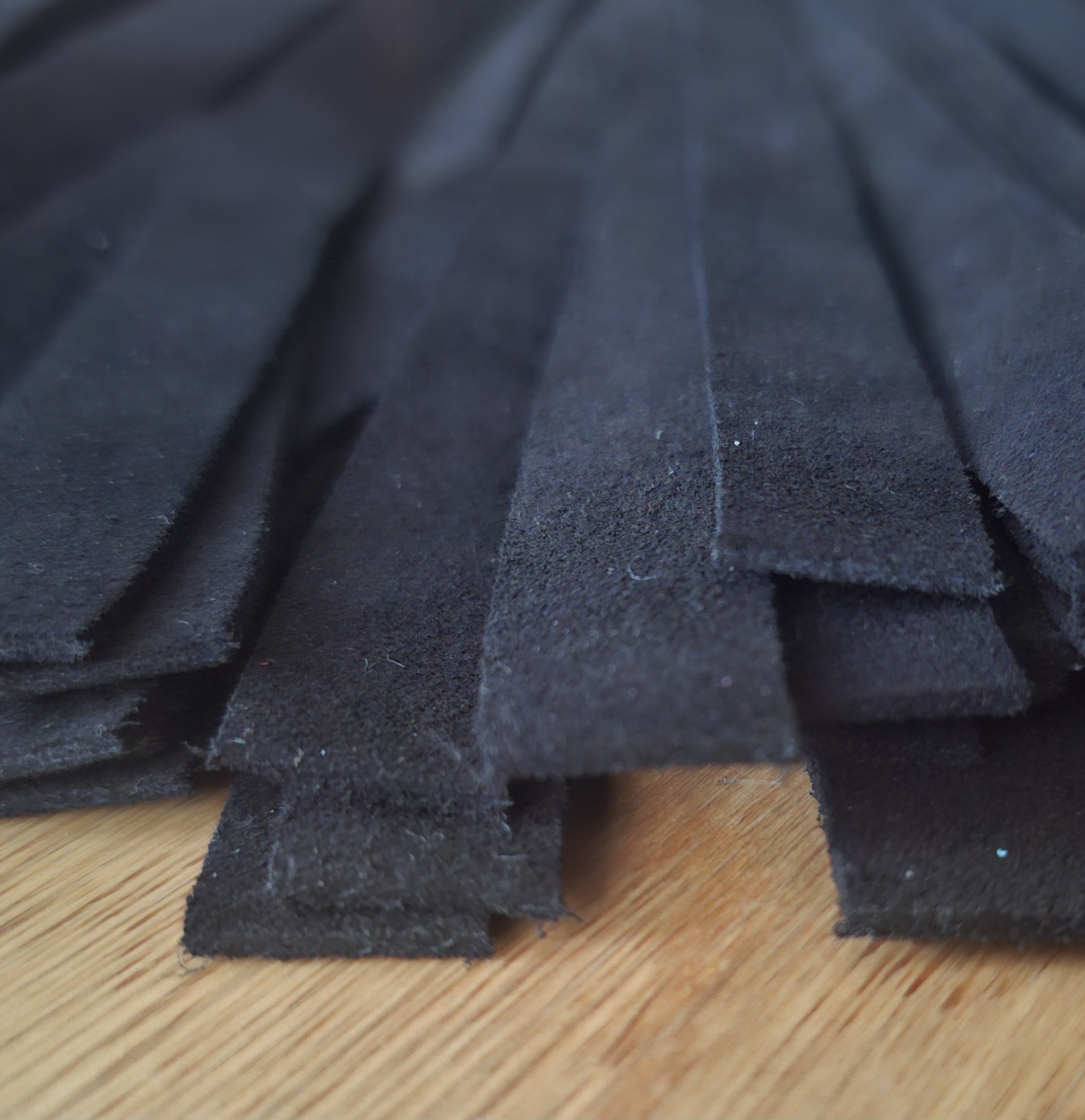 Wir können die Griffstücke aktuell in Zebrano, Olive, amerikanischem Nussbaum und Padoukholz anbieten. Als Leder verwenden wir Kalb-Veloursleder, Yak-Veloursleder und Yak-Leder. die Veloursleder sind beidseitig aufgeraut und zwirbeln etwas mehr. Das normale Yak-Leder steht ihnen an Wucht in nichts nach, schmeichelt der Haut etwas mehr. Je nach Griffform und verwendetem Holz bringt dieser XXXL Flogger bis zu einem Kilogramm Gewicht auf die Waage. Der Griffdurchmesser beträgt max. ca. 50 mm, an der dünnsten Stelle ca. 35 mm.
